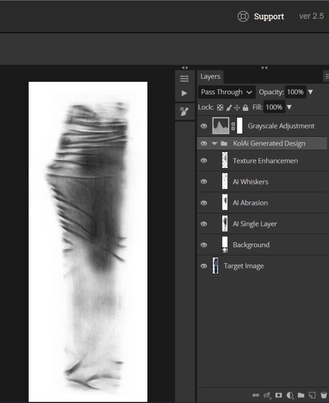 Make your 3D dry process templates in minutes with KolAi.Simply open a picture of your target garment and KolAi's plugin will automatically extract the dry process.