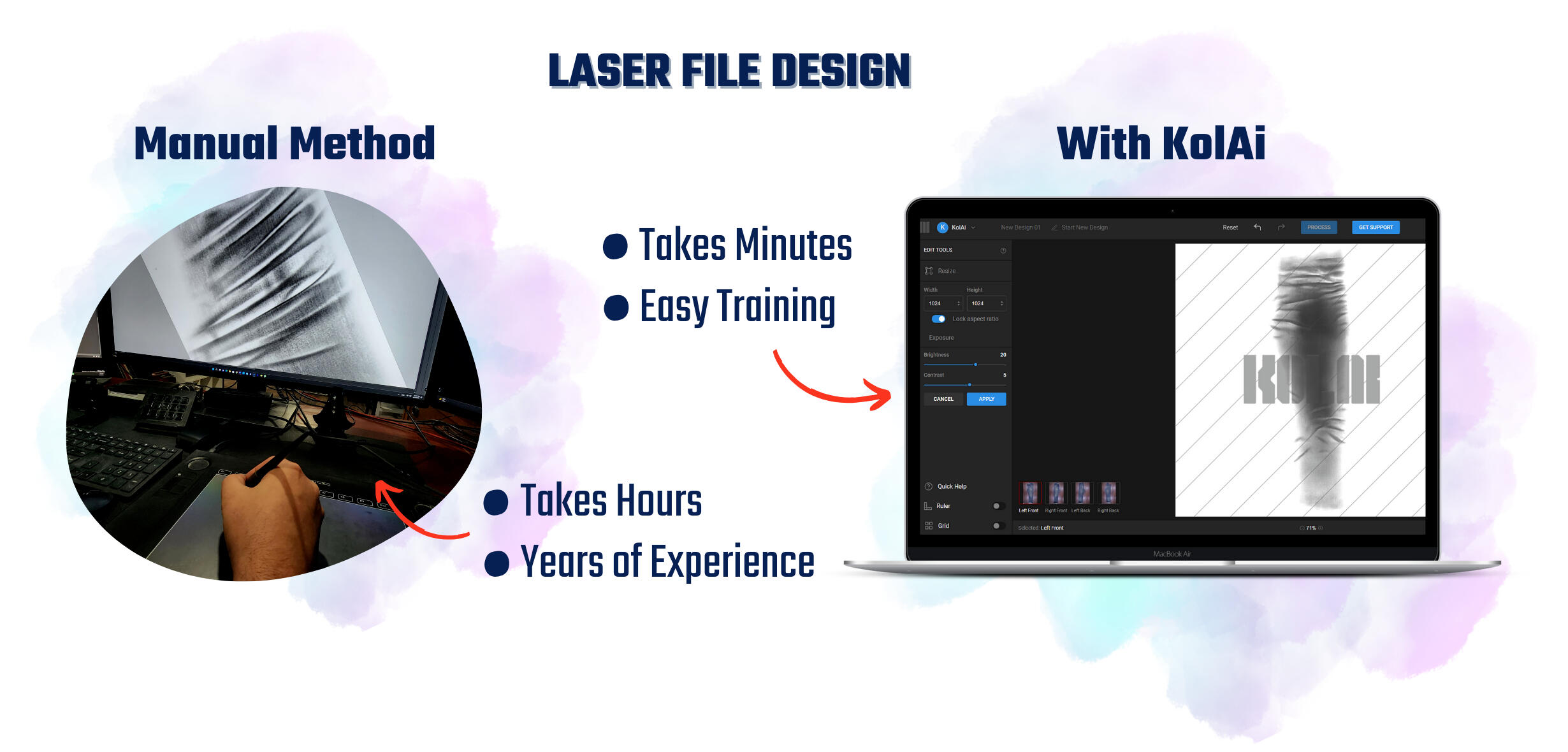 For every hour of traditional work, KolAi Designer saves me 55 minutes!– Luis Hernandez, Laser Designer based in Mexico
