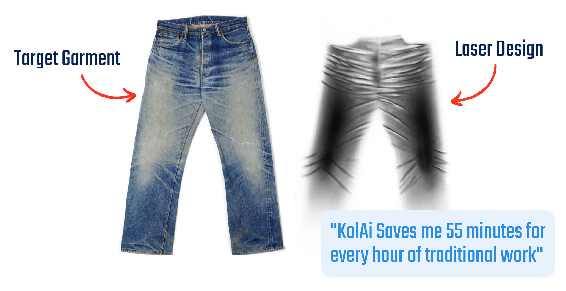 Before KolAi, I make a vintage design in 7 or 8 hours, but after KolAi I just take the picture, upload and retouch a little bit… it’s easy.– Erhan Arslan, Laser Designer & Laser Department Manager at National Jeans Company (SFI)