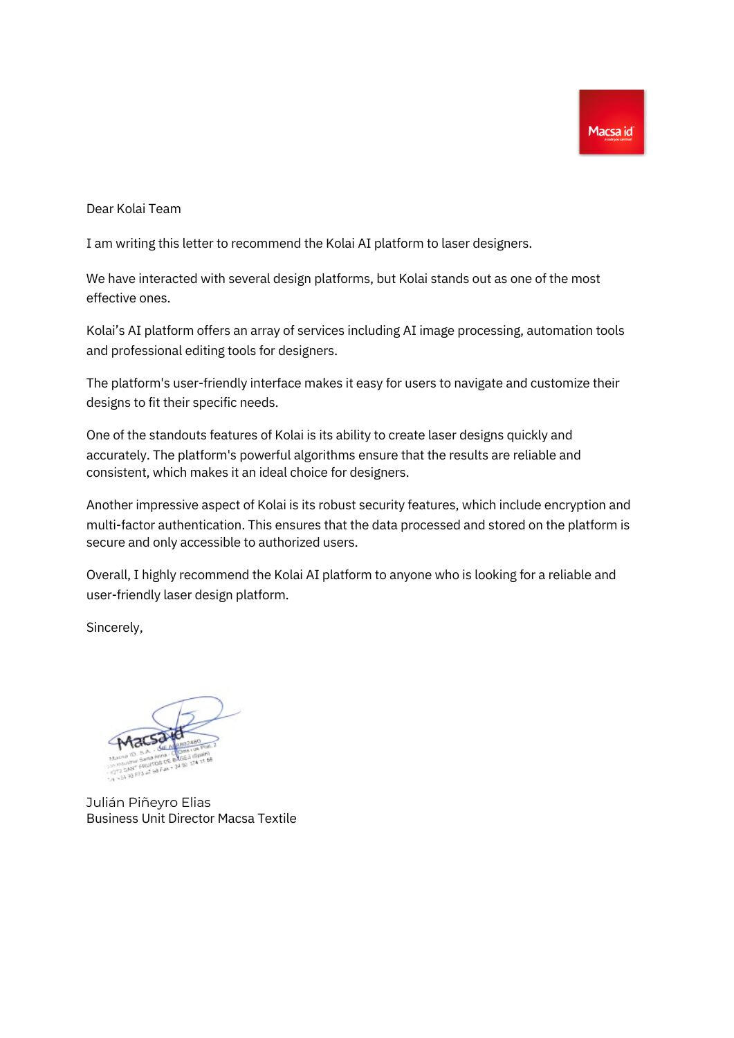 For every hour of traditional work, KolAi Designer saves me 55 minutes!– Luis Hernandez, Laser Designer based in Mexico